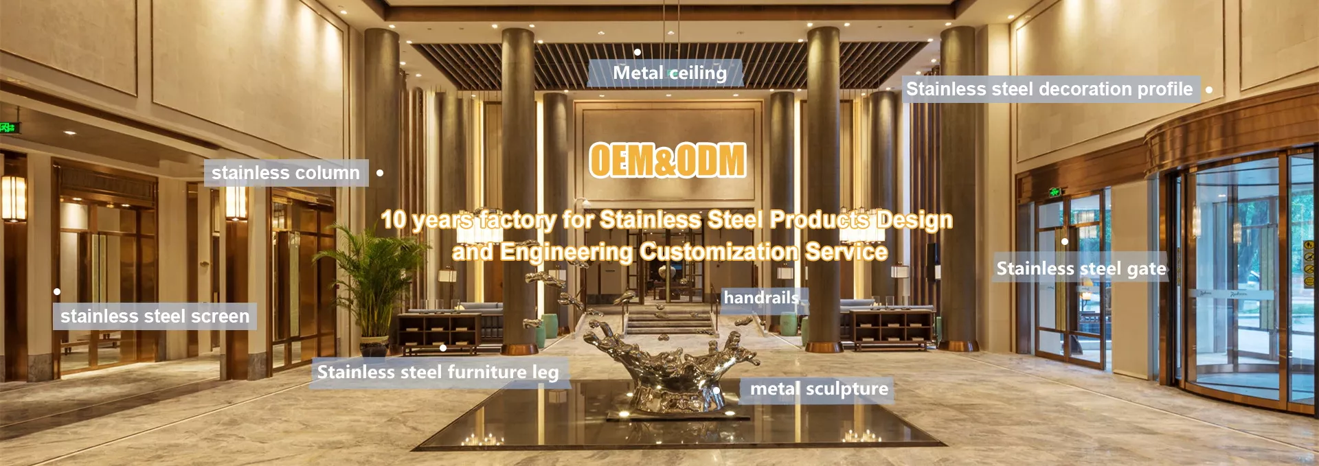 Main products including stainless steel U channel , T shape , L shape and all of other tile trim, corner trim, skirting, also partition screen and any other stainless